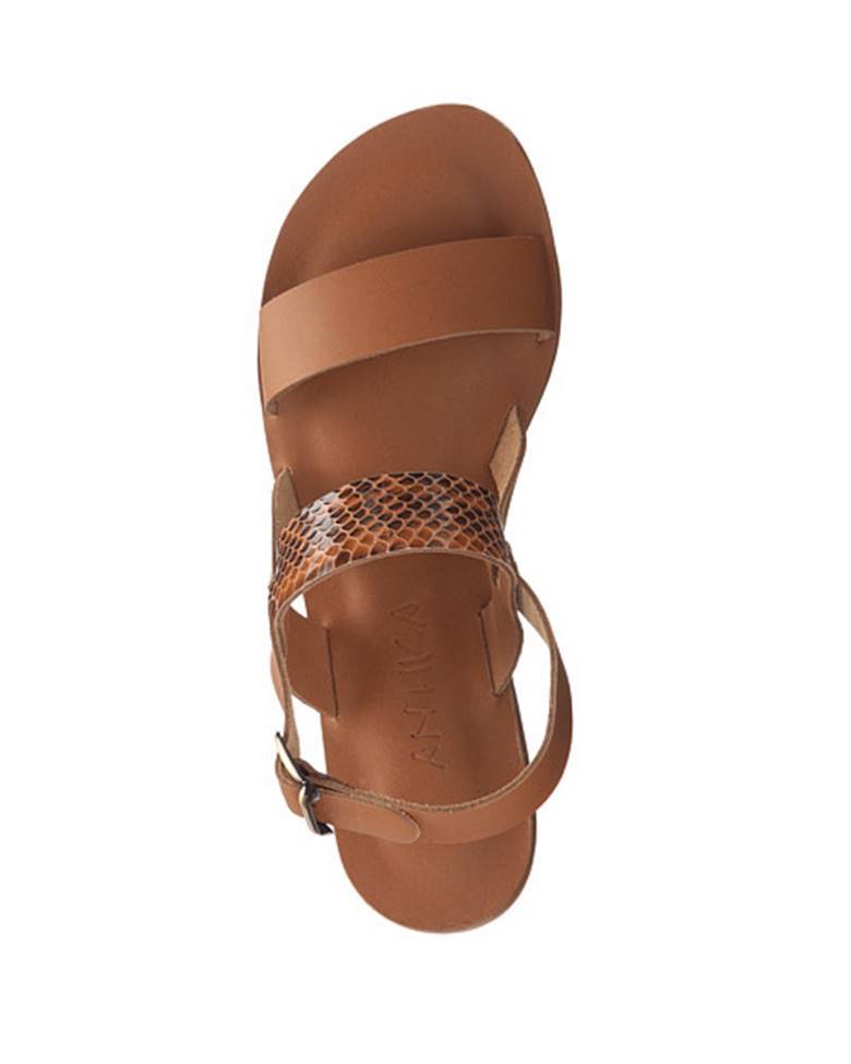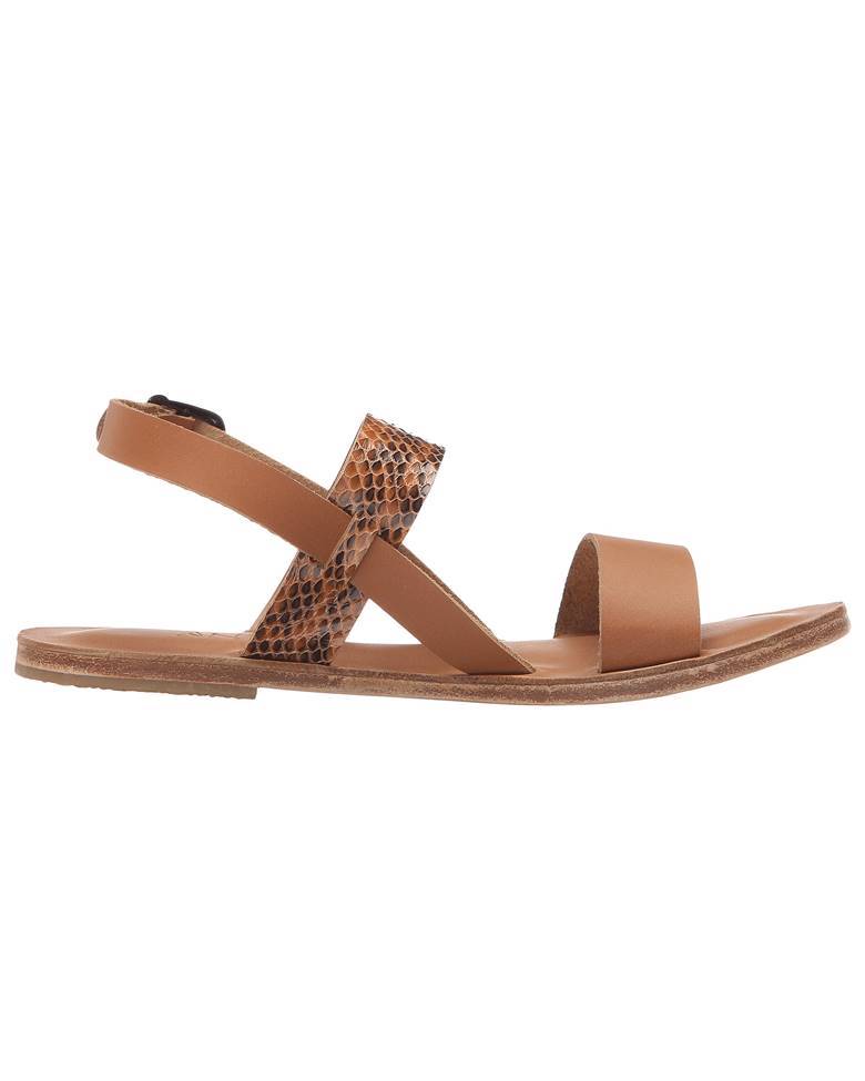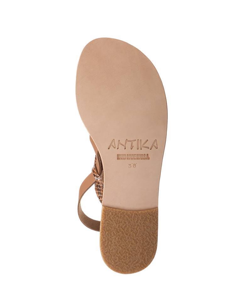 Complement your sandal collection with the chic Abbot Kinney Blvd Sandals, Part of the Antika Collection. Leather uppers with real snake skin. Adjustable buckle closure at ankle. Leather lining. Molded leather footbed. Durable leather outsole with rubber heel. Made in the U.S.A.