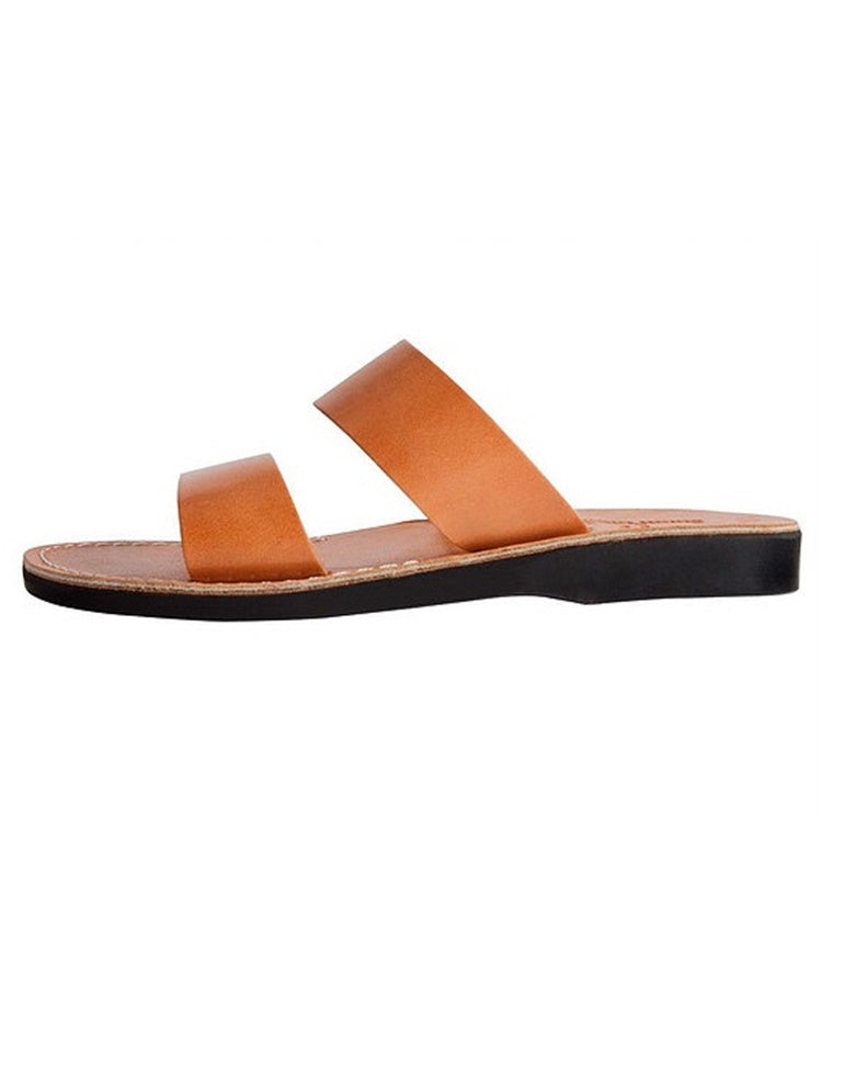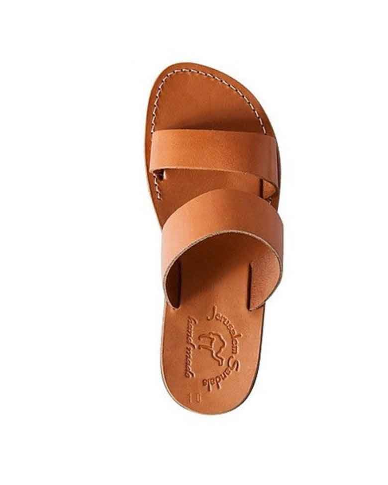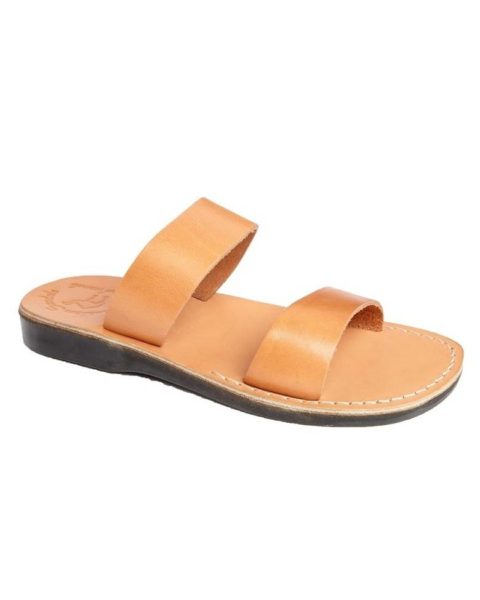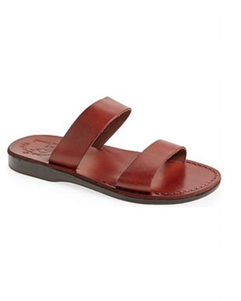 A slip-on leather sandal handcrafted in Jerusalem and made to last for years.