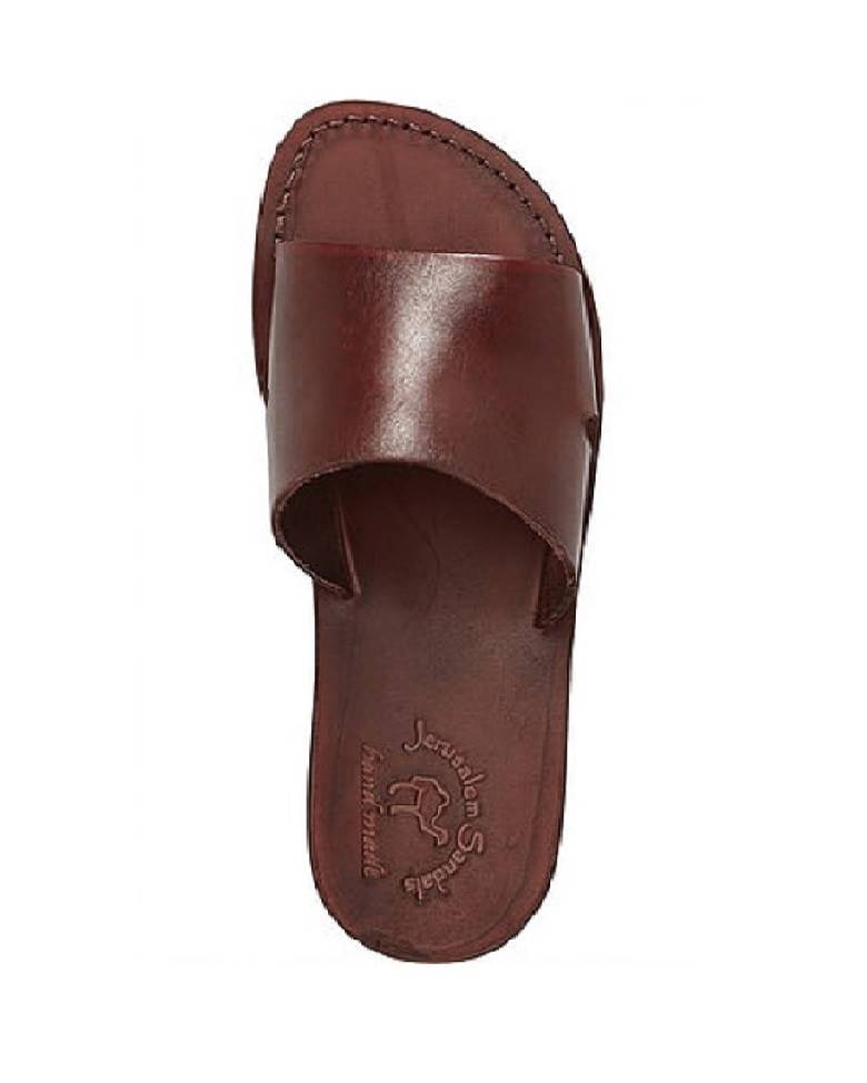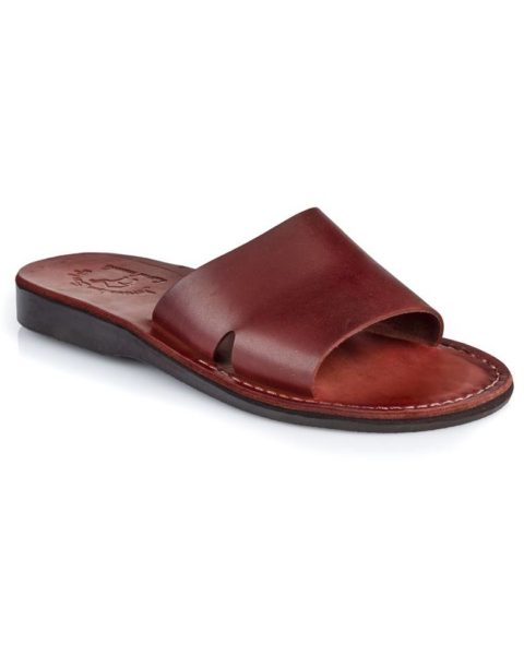 A slip-on leather sandal handcrafted in Jerusalem and made to last for years.