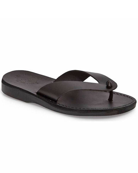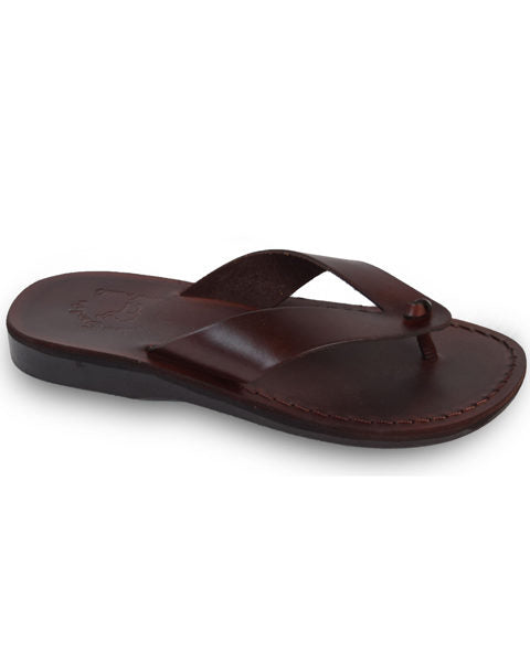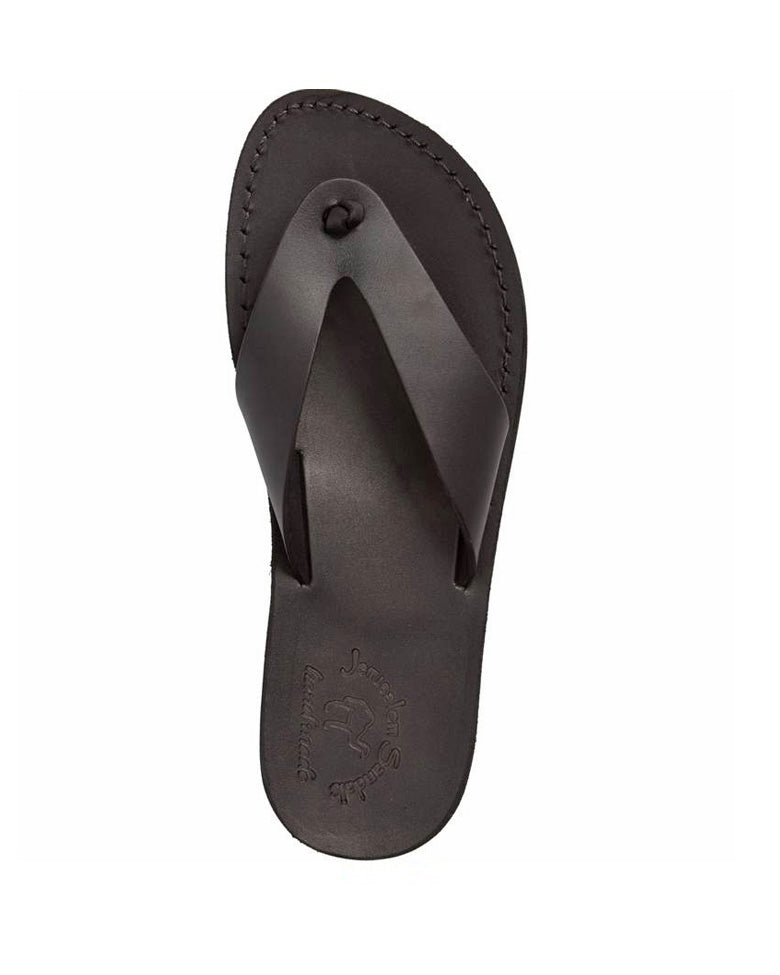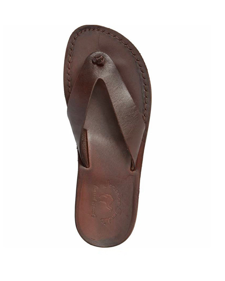 Leather sandals handcrafted in Jerusalem featuring cross straps and moulded leather footbed.