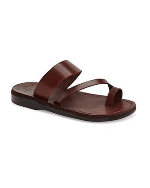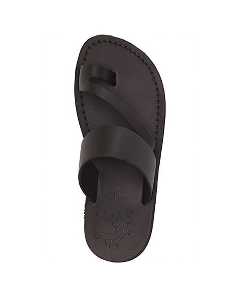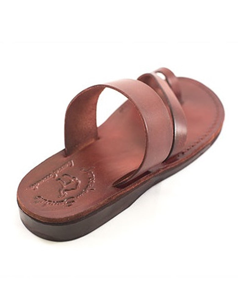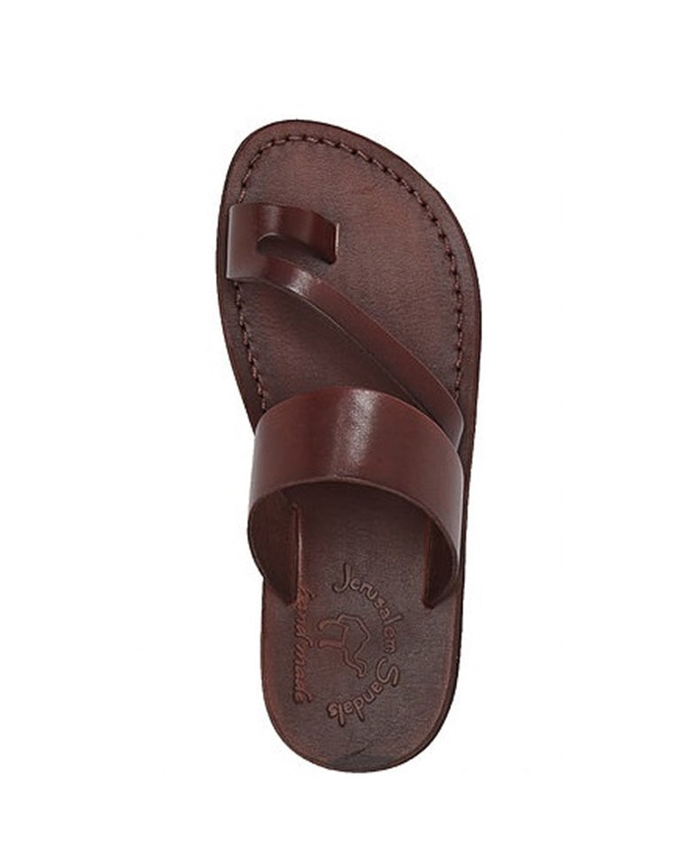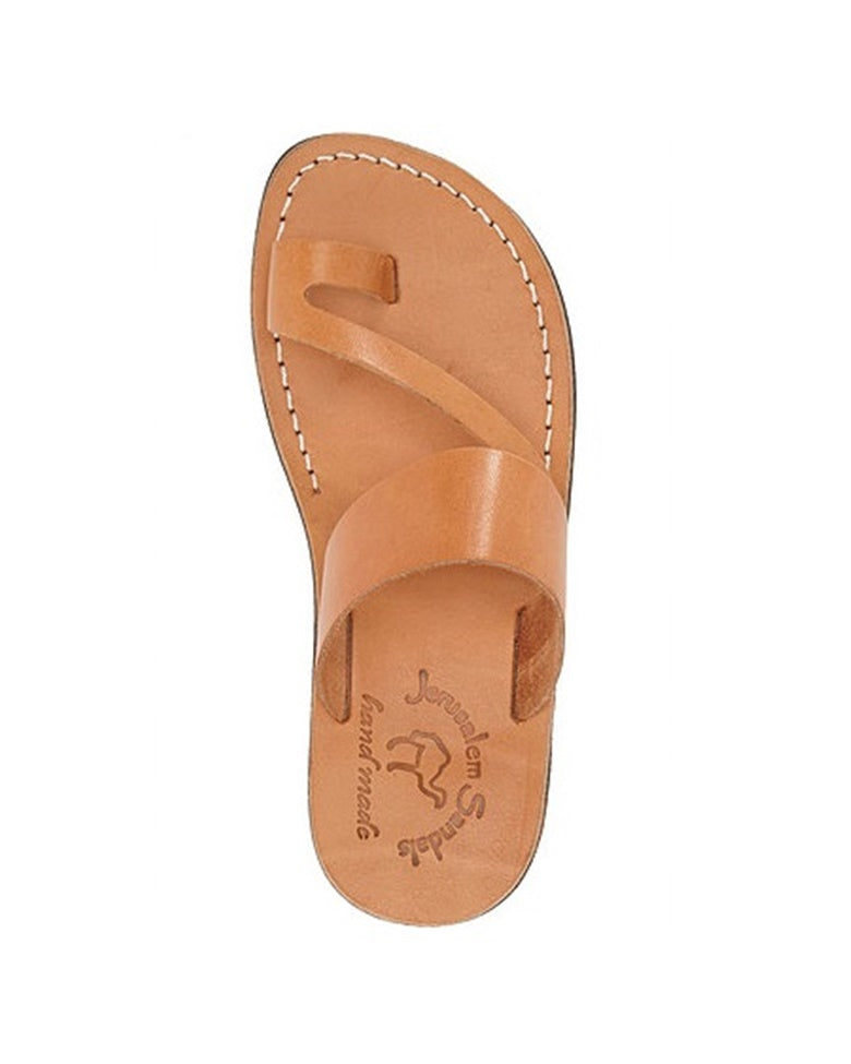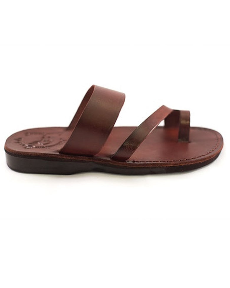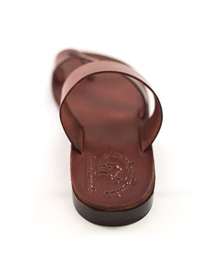 Leather sandals handcrafted in Jerusalem featuring cross straps and moulded leather footbed.