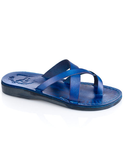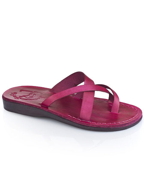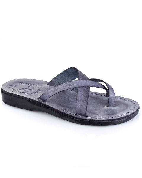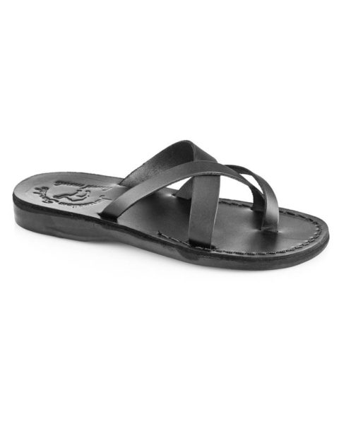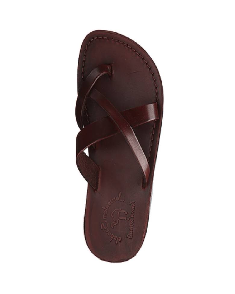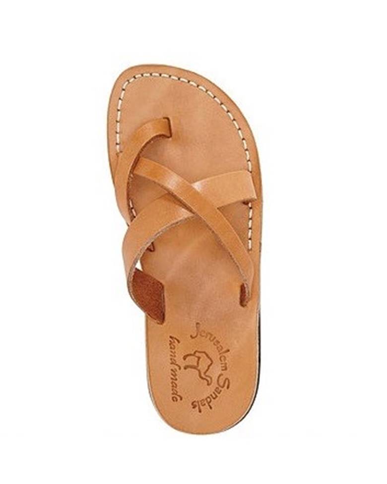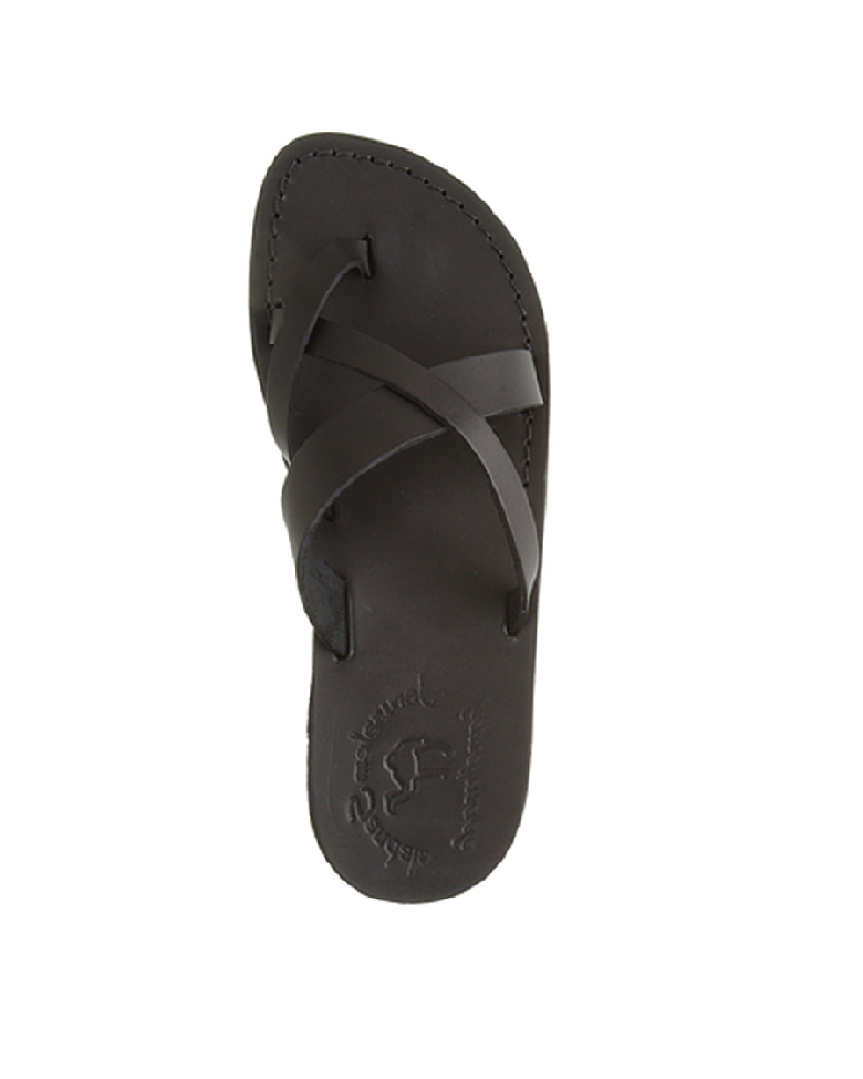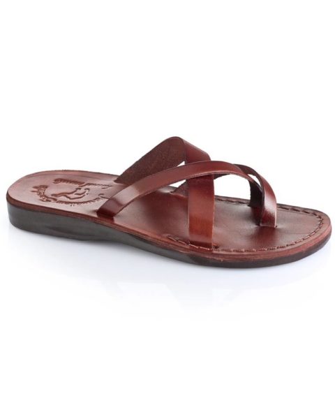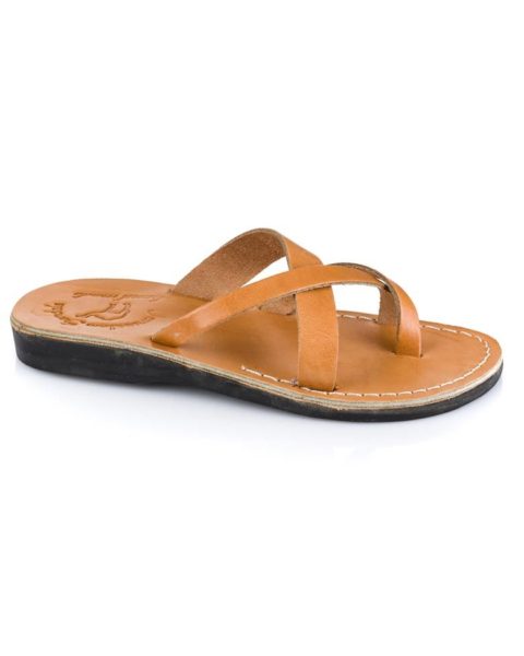 Leather sandals handmade in Jerusalem featuring cross straps and moulded leather footbed. Built to last and grow more comfortable with time.