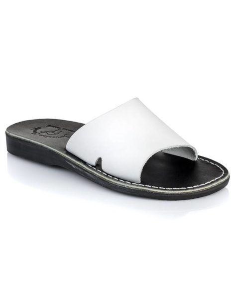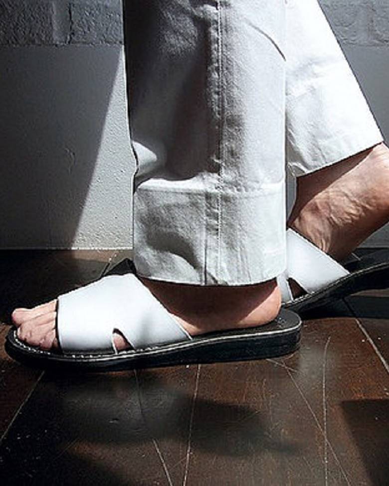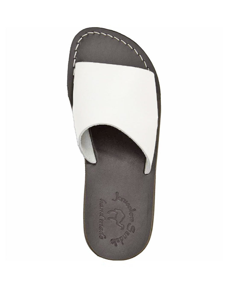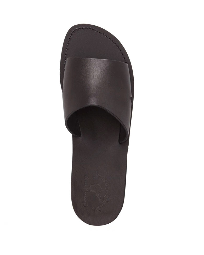 A slip-on leather sandal handcrafted in Jerusalem and made to last for years.