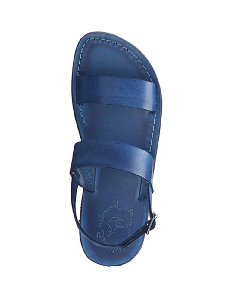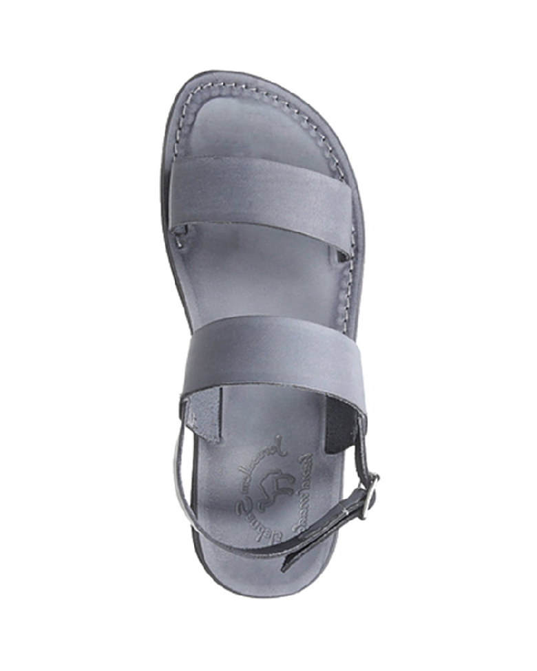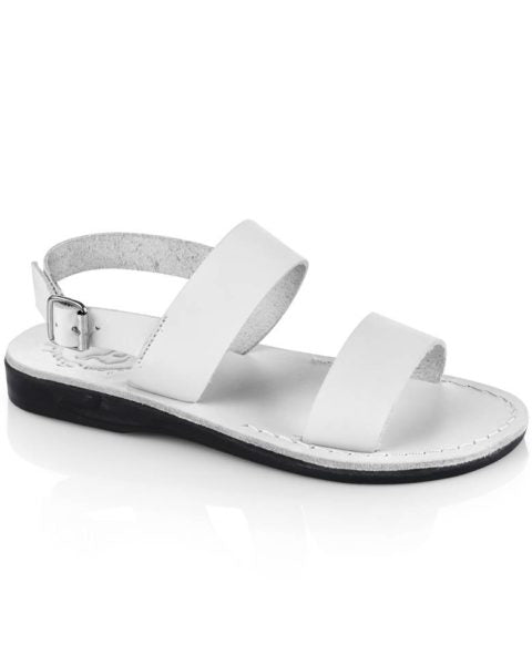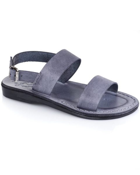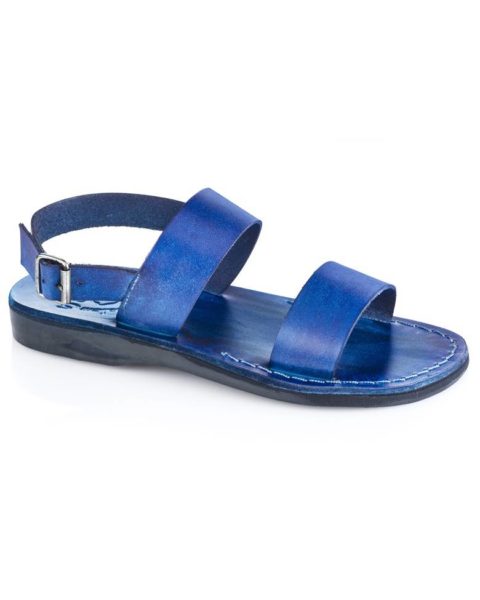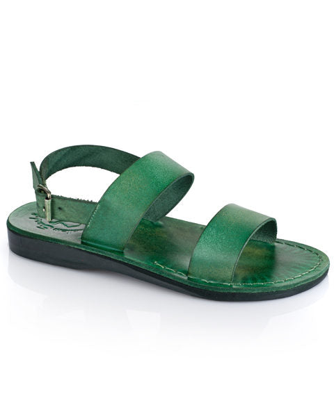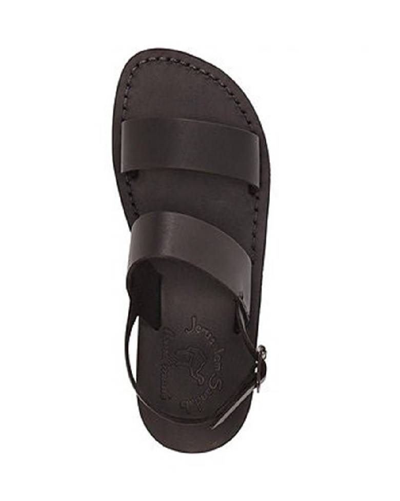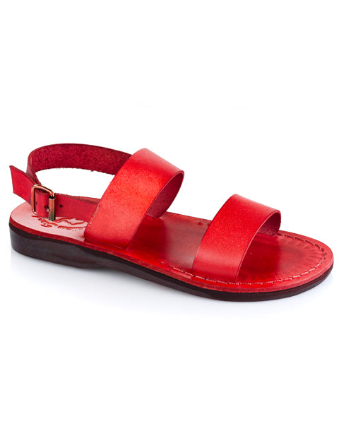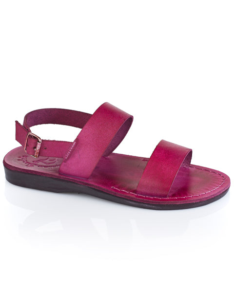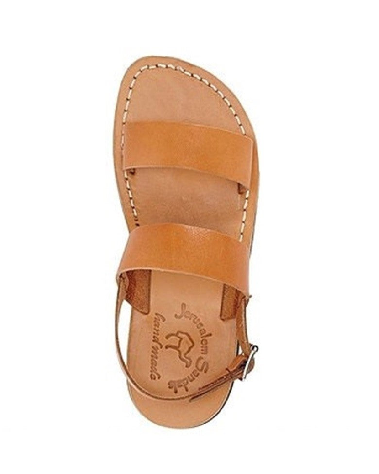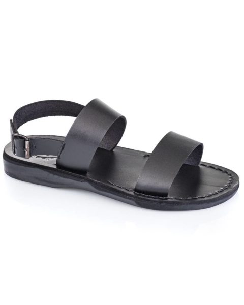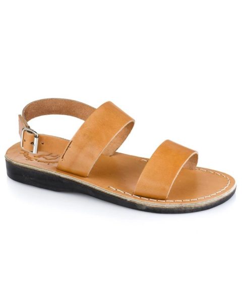 Leather sandals handmade in Jerusalem featuring two wide straps and a slingback buckle for a secure fit.