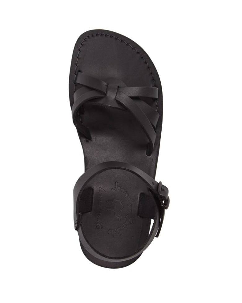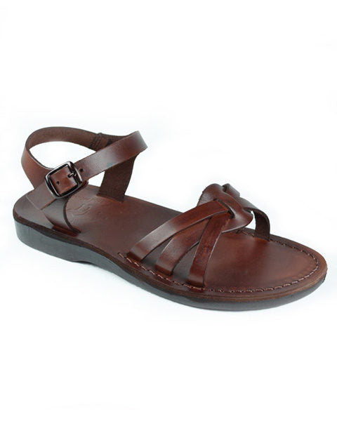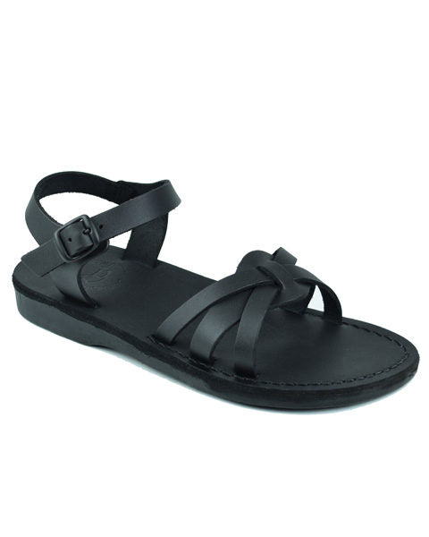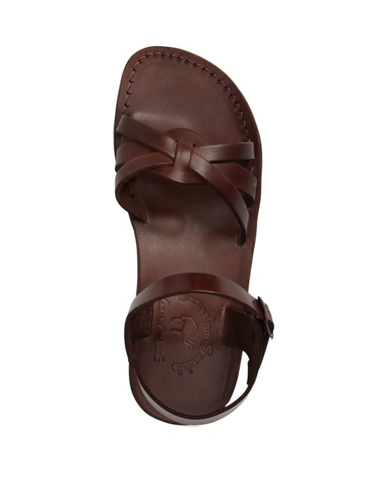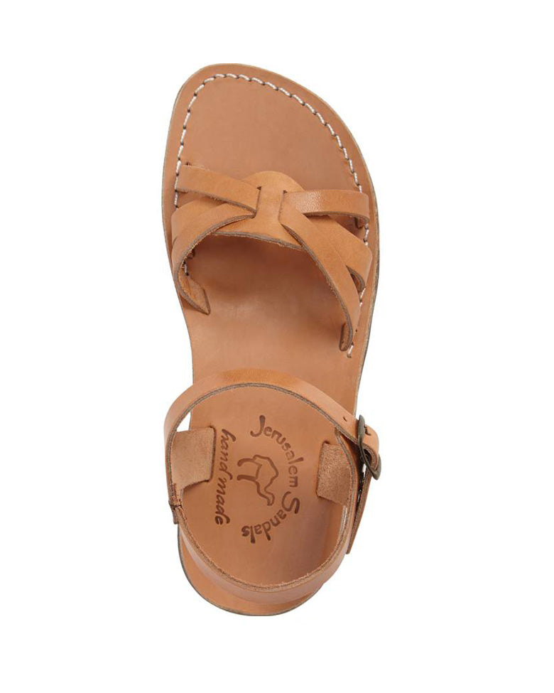 Leather sandals handmade in Jerusalem featuring two wide straps and a slingback buckle for a secure fit.
