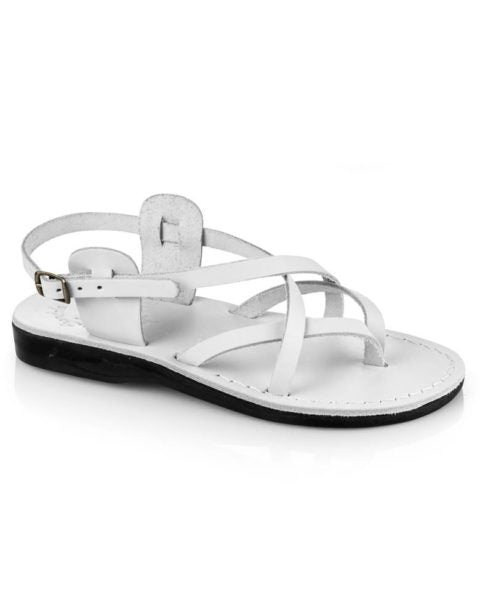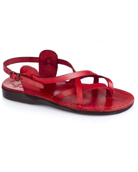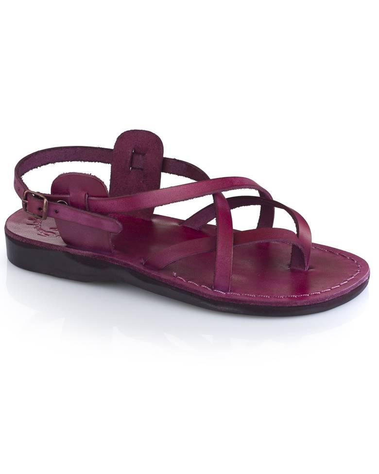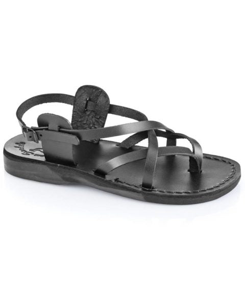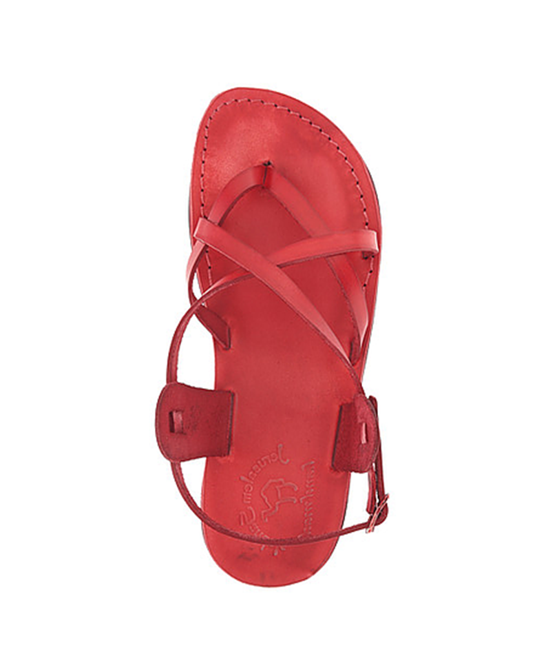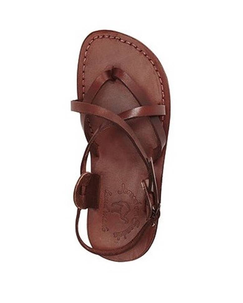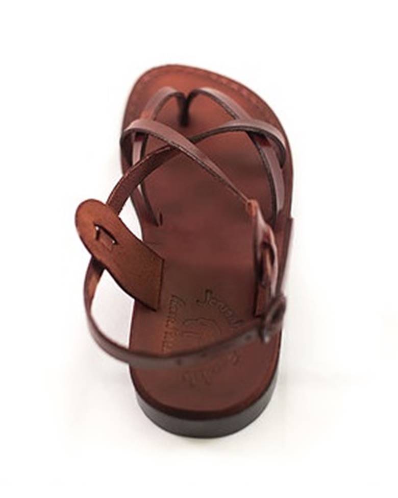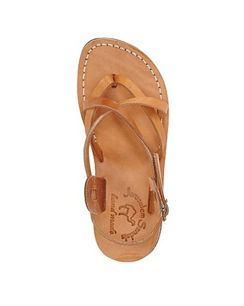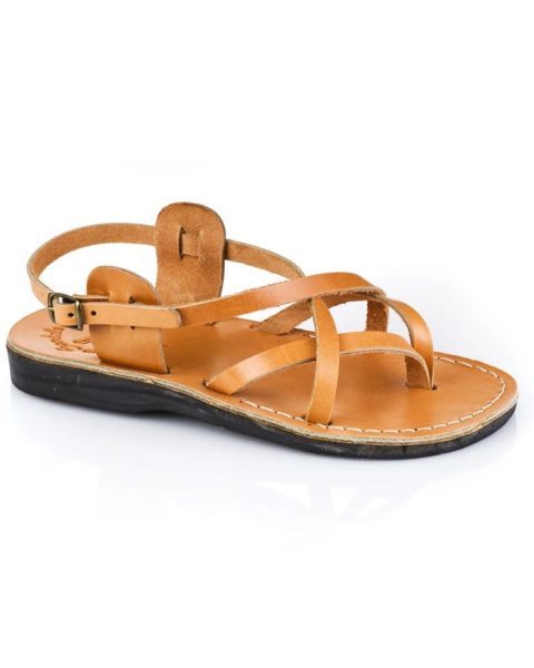 Leather sandals handmade in Jerusalem featuring cross straps and a slingback buckle for a secure fit.