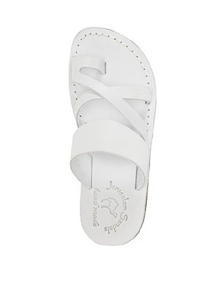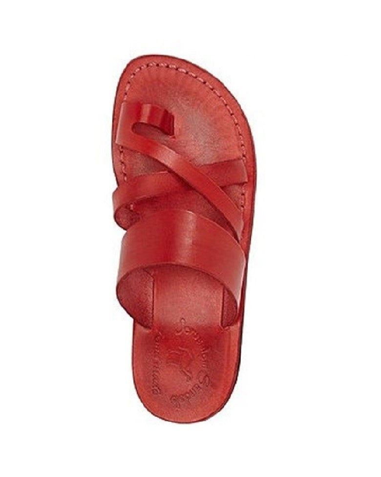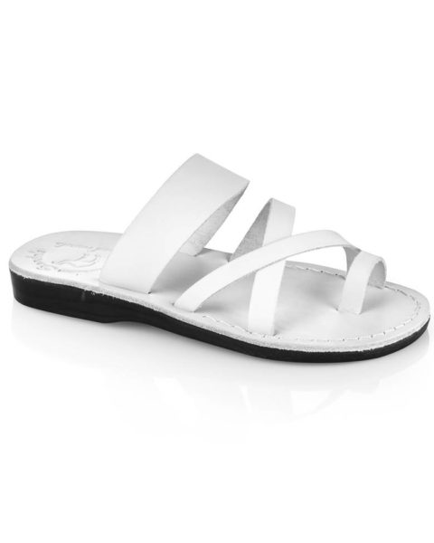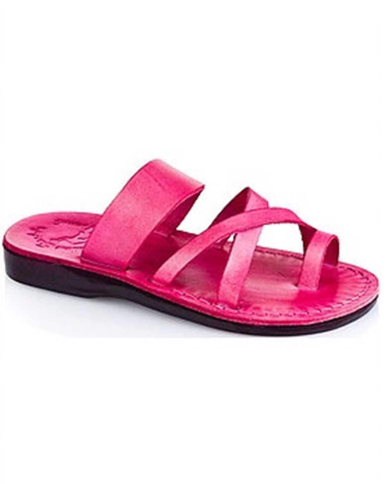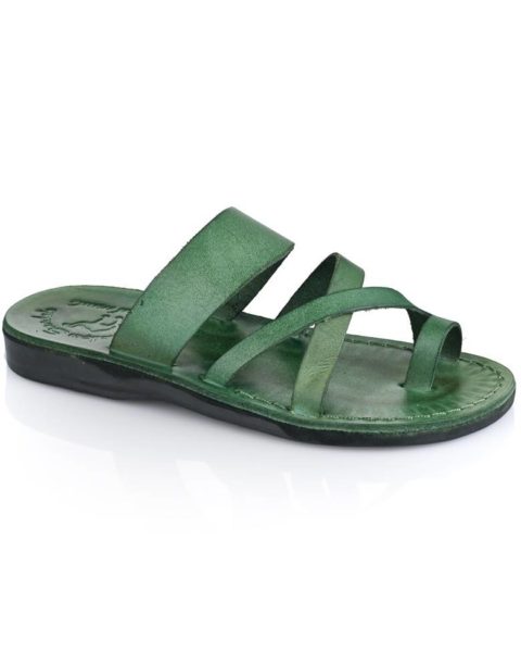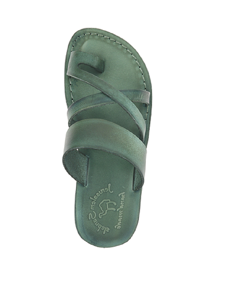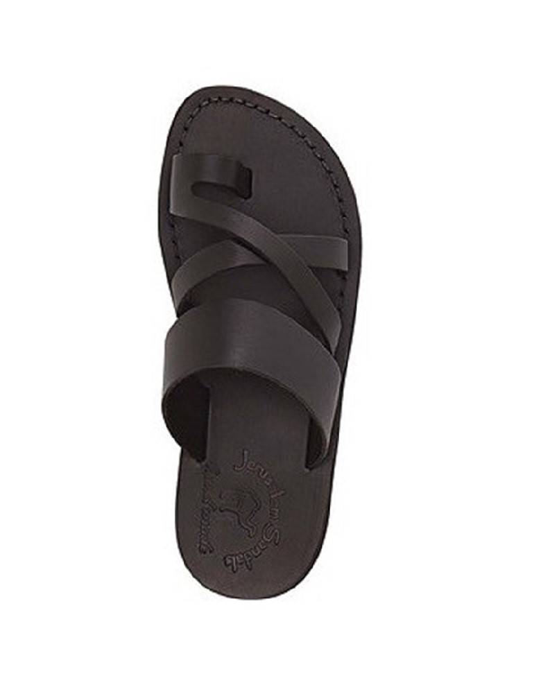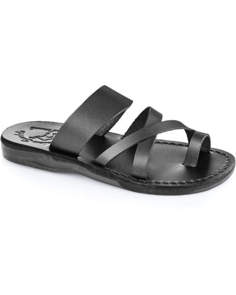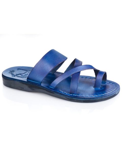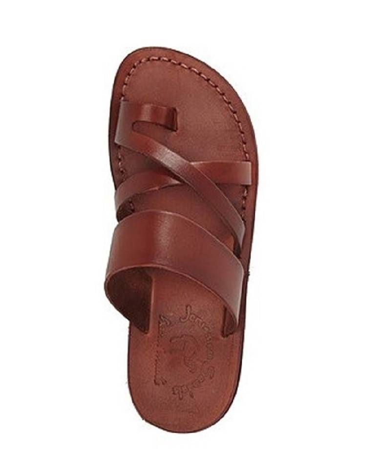 Leather sandals handmade in Jerusalem featuring cross straps and moulded leather footbed.