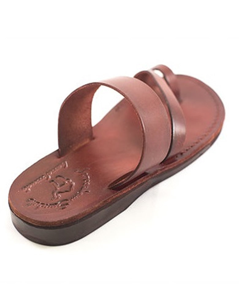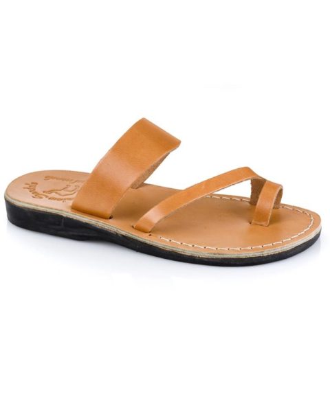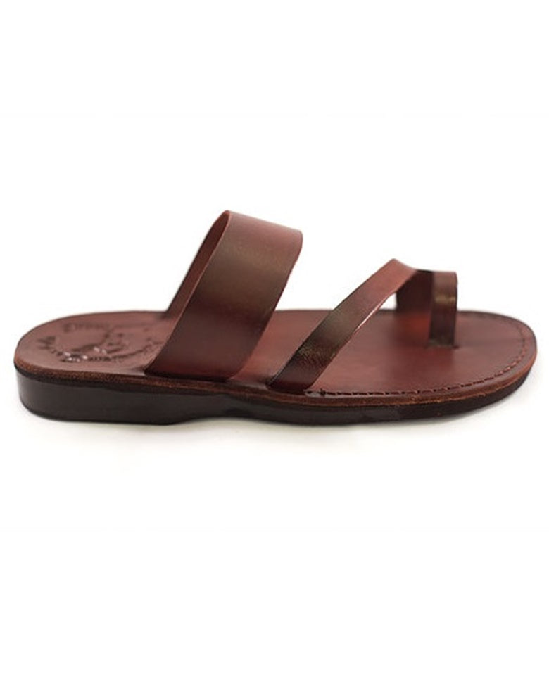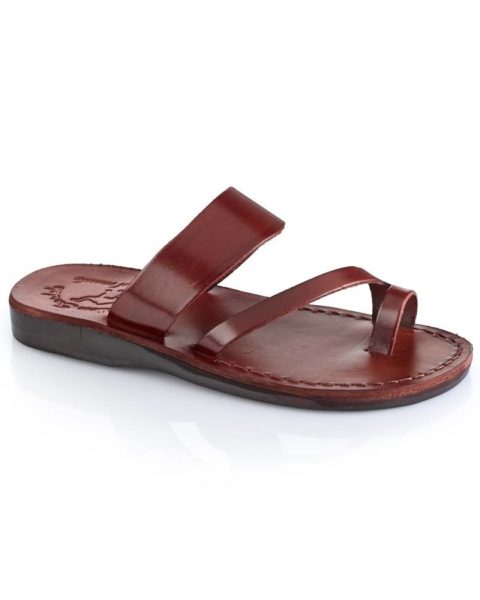 Leather sandals handcrafted in Jerusalem featuring cross straps and moulded leather footbed. These sandals are built to last for years, and the smooth leather molds to the shape of your foot for a custom fit.
